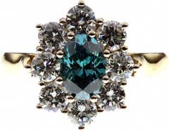 Natural Blue diamonds are so rare that most jewellers have never seen one and will never own one. In recent years, methods of producing intensely coloured diamonds, including fancy blue, have been developed. The process probably recreates the conditions which existed millions of years ago to produce natural fancy coloured stones. The treatment can only work with a small minority of diamonds and involves irradiating them causing the colour change, usually followed by heat treatment to stabilise the colour.