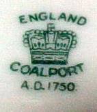 - Printed or gilt ‘ampersand’ mark. c. 1861-1875 The name ‘Coalport’ rarely appears with this mark.