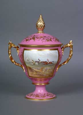 - Coalport China Racing Trophy and Cover, Rose du Barry pink ground