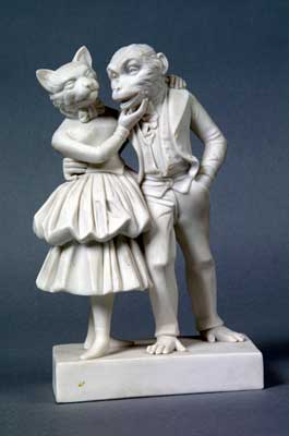 - A Coalport Parian figure of cat and monkey in costume c. 1845-1850. Shrewsbury Museums Service.