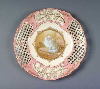 - Coalport China Pierced Plate, White Cat