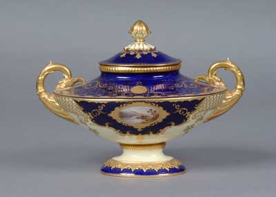 - Coalport China Boat-Shaped Vase and Cover, cobalt blue ground