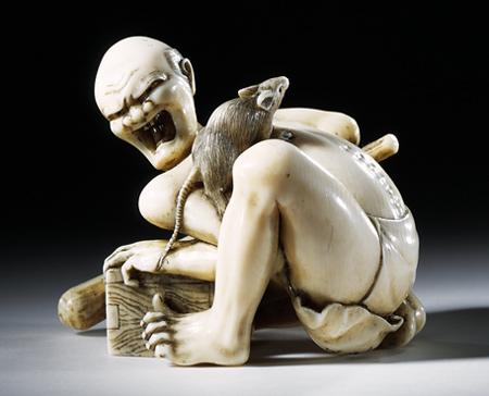It is important to be aware of fakes of which there are different types. There are crude modern copies, referred to as “Hong Kong” netsuke, either in ivory or plastic, that are usually sold for a few hundred dollars in souvenir shops. There are also good modern copies of 18th and 19th century works, meant to defraud and sold for thousands of dollars.