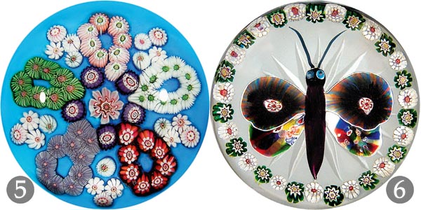 Collectors can buy paperweights from just a few pounds but, like most collectables, unless you are very lucky, the more you can afford to pay, the more likely new and antique examples are to hold or increase their value. With antique paperweights, it’s unlikely you will find a bargain made by any of the three great French factories. It’s a case of buying the best examples you can, whether they are new or old. Regardless of the cost or the date of the paperweight, buy ones that you love to hold and to look at. These will give you pleasure far outweighing their value at auction or in an antique shop.