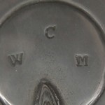 Whilst hallmarks on pewter have no official significance, they can help identify the pewterer. There are normally four hallmarks, but pewterers from Wigan often used five, whilst very occasionally other pewterers used two, three or six. The hallmarks often include the pewterer’s initials. Sometimes all the hallmarks are the same.