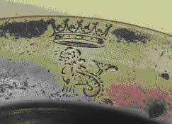 The crowned rose was used on pewter from the mid 16th century to denote higher-quality metal. Most pewterers had their own variation of the design. By the end of the 17th century pewterers were also using a crowned X to indicate harder alloys, but as time went on all control over the use of both marks was lost and pewterers used them indiscriminately on all their wares. Crowned rose marks can be helpful in identifying pewterers as most used their own variation of the design. Even crowned Xs can sometimes be helpful, although there is less scope for variation.