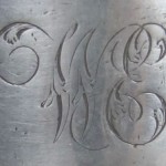 On drinking vessels owners tended to engrave either a monogram or the full name and address. These are particularly common on pub pots of the 19th and 20th century as a deterrence against theft. If you have both the publican’s name and the name and address of the pub, the website http://deadpubs.co.uk might be able to help you with dating.