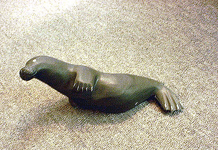 The second most common carvingstone is argillite. The distinctive carvings from Arctic Bay and Sanikiluaq are made from argillite which ranges from light green to almost black, often has a distinctive striped grain and takes a beautiful polish.