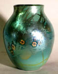 These vases produced c 1905-1915 were made according to paperweight making techniques but what would be a flaw in a paperweight, i.e. bubbles of air, adds to the naturalistic effect as bubbles rising to the surface of the water.