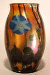 Many Tiffany specialties were developed from ancient forms and styles. For example, the technique for creating millefiori had been used 2000 years ago, but not by Tiffany’s methods or with his lustre finish. The closely packed “thousand flowers ” of millefiori, most familiar in French paperweights, were formed by fusing tiny rods of coloured glass. Tiffany did not place segments of these rods in close proximity as in paperweights. In the celebrated Tiffany floral vases, a patch of opalescent glass and the whole was reheated, allowing the well-separated flowers to be moulded into the body before the piece received its iridescent finish.