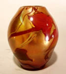 With intricate Tiffany specialties like the peacock feather motif or a jack-in-the-pulpit vase, executing this technique was very difficult. Specialty glassware is rare and therefore expensive. Lava glass, with its glorious golden trails on rough-surfaced basalt, and Cypriote glass, rolled in fragmented crumbs of glass to give the impression of old Roman glass, are examples of iridized pieces of Tiffany ware. Damascene glass is another such specialty, developed c.1910, which incorporates striped of golden lustre giving the appearance of damascened steel when blown into wavy stripes. Agate glass exhibits a marbled effect resulting from a mixture of various coloured glasses.