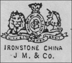 - John Moses & Co Glasgow Pottery Trenton, New JerseyUse of part of British Royal Coat of Arms with the Lion, Unicorn, but with letters in the Shield but both mottos.