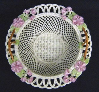 Pottery in the region began around 1849, after John Caldwell Bloomfield inherited his father’s estate. Seeking to provide employment for his tenants, who had been affected by the Irish potato famine and, being an amateur mineralogist, he ordered a geological survey of his land. On finding that the area was rich in minerals, Bloomfield went into partnership with London architect Robert Williams Armstrong and Dublin merchant David McBirney. In setting up a pottery business, Bloomfield managed to get a railway line built to Belleek so that coal could be delivered with which to fire kilns.[2] Building started on the pottery in 1858. Initially starting with domestic products, it wasn’t until 1863 that small amounts of the Parian porcelain for which Belleek is famous for to this day, was successfully produced. By 1865, the prestige of the company had increased enough that its market included Ireland, England, the United States, Canada and Australia, and clients included the Prince of Wales, Queen Victoria and the nobility.