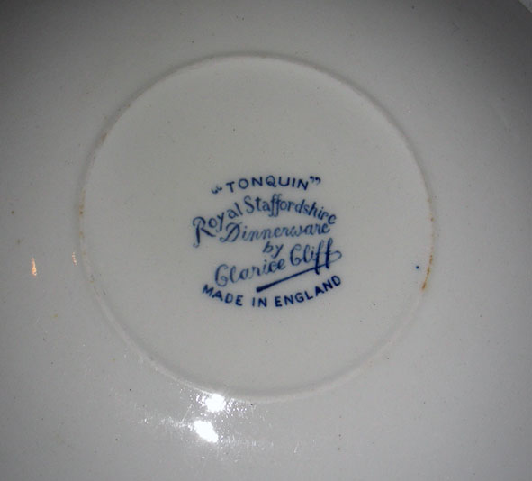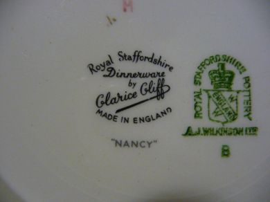 It is important to remember that Cliff only produced wares for A. J. Wilkinson’s and its subsidiary Newport Pottery. Later pieces are often marked Royal Staffordshire Pottery. Midwinter and Wedgwood also produced some legitimate reproductions.