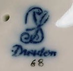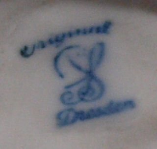 There were different trademarks for Dresden Porcelain in the past. Since 1901, the blue “SP Dresden” (for Saxonian Porcelain Factory Dresden) is a protected trademark guaranteeing the authenticity of Dresden Porcelain.