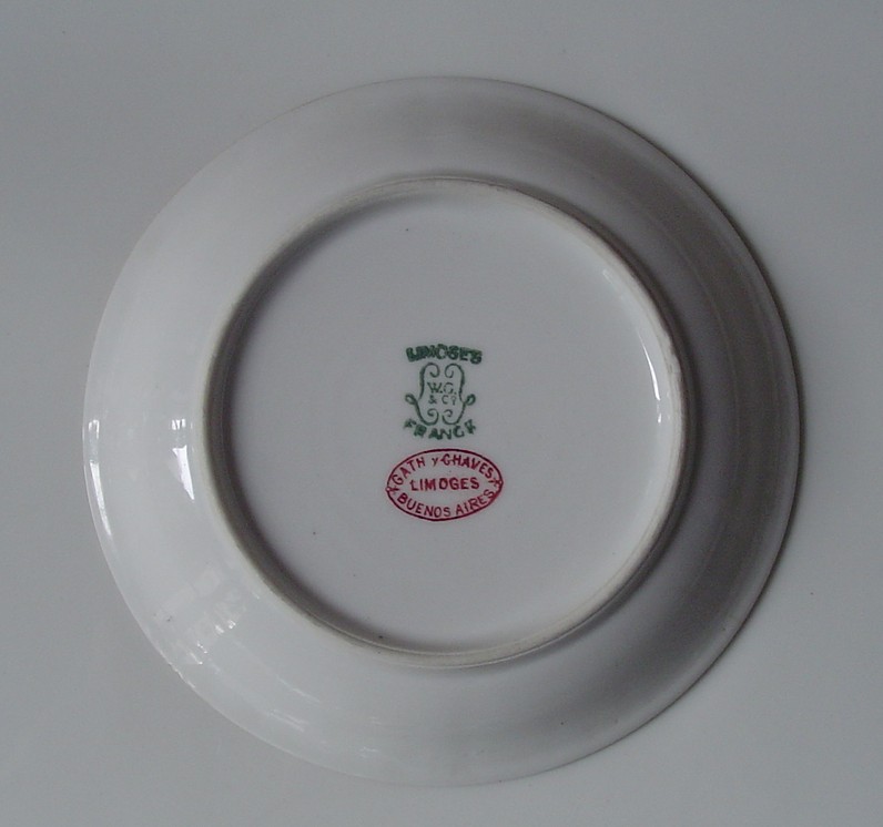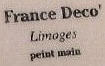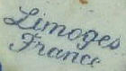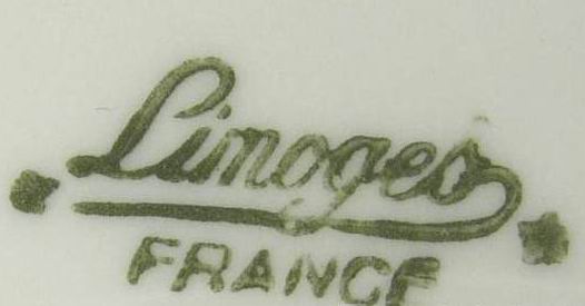 MAKER: The mark of the factory in Limoges that casts and fires the porcelain to make the white porcelain blank or whiteware is under the glaze or impressed into the porcelain. The makers mark is often just Limoges France in various scripts and colors. Since c1891, US law has required the country of origin to be marked on imported goods, but authentic pieces not intended for export often lack the France mark.
