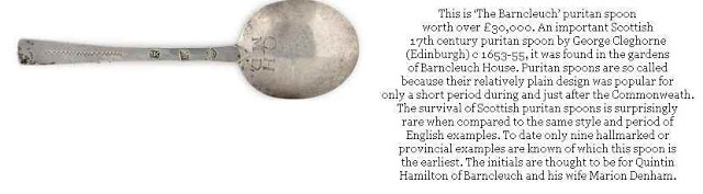 The puritan spoon replaced the slip-top spoon (with hexagonal stem and fig shaped bowl) during the early Commonwealth period and gained it’s name from Cromwell’s Puritan soldiers opposed to King Charles I, who considered the more elaborate Apostle spoons irreverant.