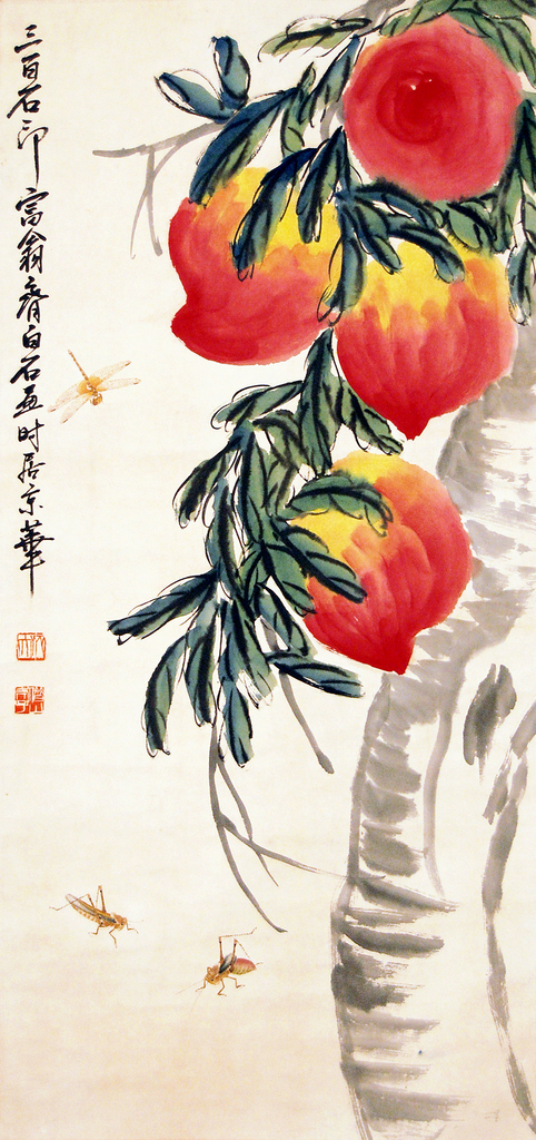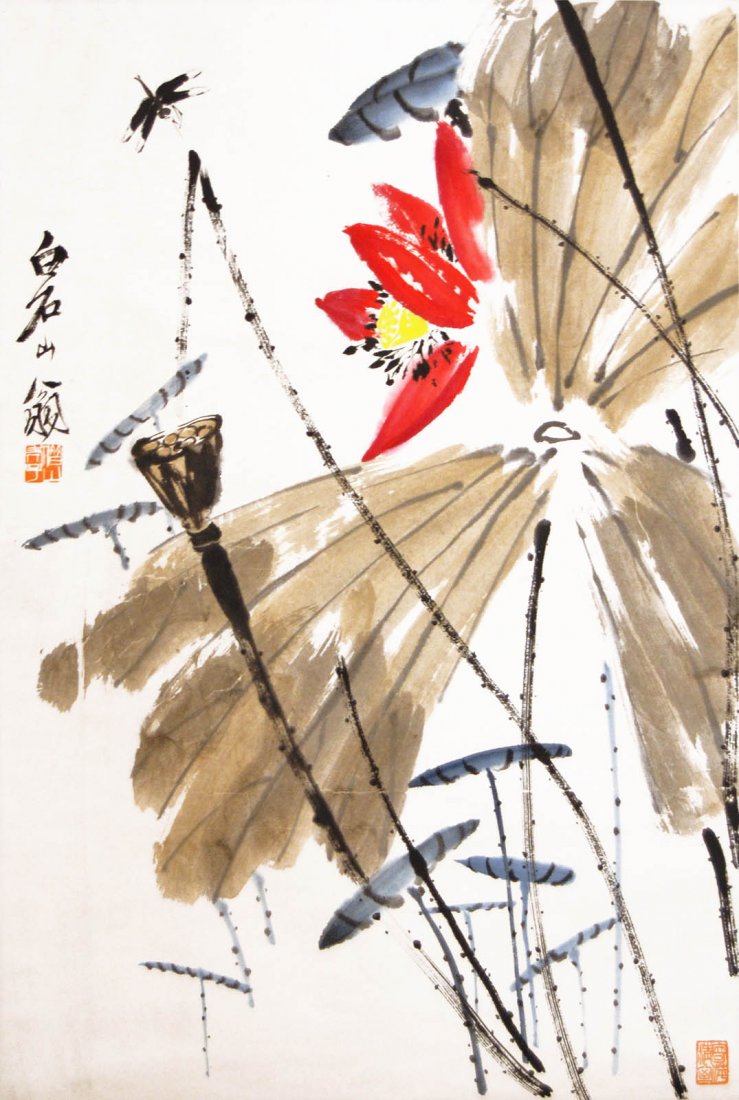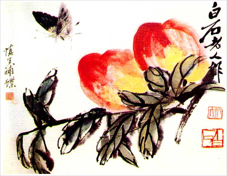 Qi Baishi (Ch’i Pai Shih) is one of the greatest Chinese painters. Chinese tradition places essences, character, and spirit above the simple faithfulness to appearances. Qi Baishi’s paintings well represent the Chinese tradition, but in an innovative form and style. Though the art of Qi Baishi was originated from nature, which one can learn from his paintings of animals, insects, and flowers, he painted them in a way nobody else had achieved before. He once said, “The excellence of a painting lies in its being alike, yet unlike. Too much likeness flatters the vulgar taste; too much unlikeness deceives the world.” Qi Baishi had developed his style over his life-long learning, studying, and innovation. His paintings were not matured until his late life.