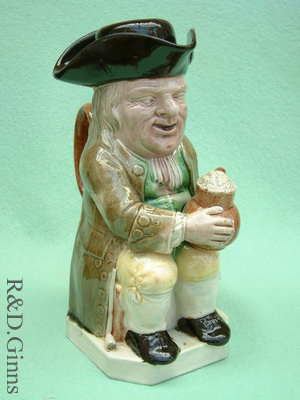 Wood was among the first of English potters to impress his name on his wares (Specimens made by the Woods, father and son, are sometimes impressed with a name, R. WOOD or R. WOOD BURSLEM). He is credited with introducing the Toby jug, his first model of the kind being “Toby Philpot” about 1762.