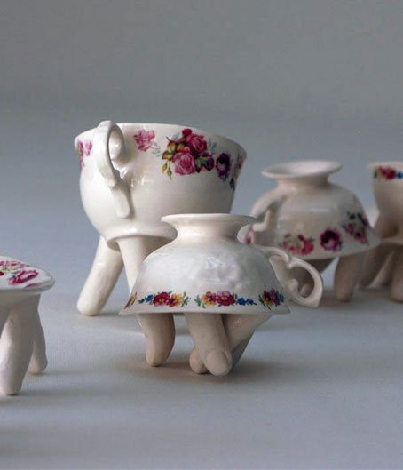 Designed in 1973 the Walking Teaset was originally handmade in earthenware by Roger Michell and decorated by his partner, Danka Napiorkowska in their own studio in Yorkshire. Signed Lustre and dated on the base of the feet, these versions are extremely rare although occasional sightings have been known.