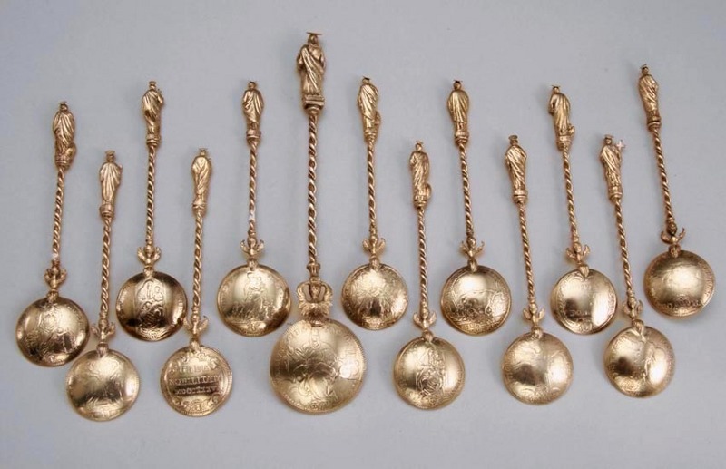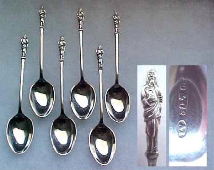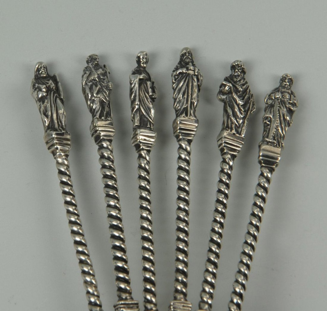 Undoubtedly it is the most well known and easily recognised of all the antique spoons with its distinctive finial. This is at the end of a spoon’s stem. Sometimes an applied cast figure such as the apostle on apostle spoons. The ideal set of apostle spoons numbers thirteen and includes the Master who would be Jesus.