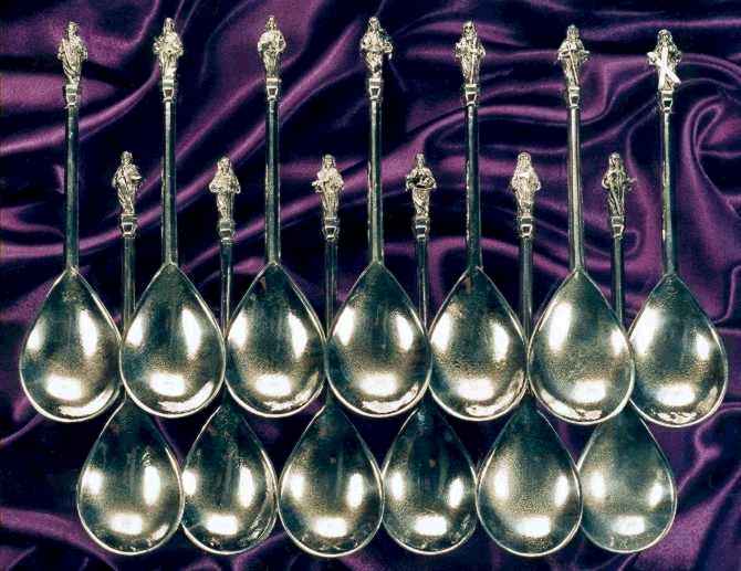 Apostle spoons symbolize the Last Supper of Christ in the company of the Apostles. Apostle spoons were especially popular in England, but were also found in large numbers in Germany.