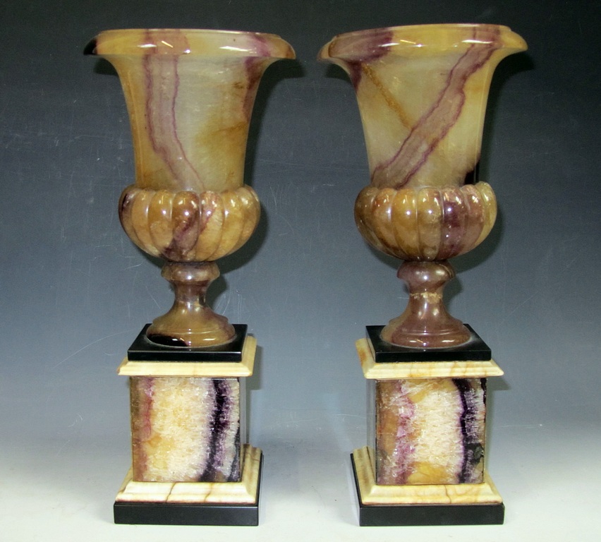 Recently a pair of Blue John stone urns on plinths realised an price of £11,200 at Auction.