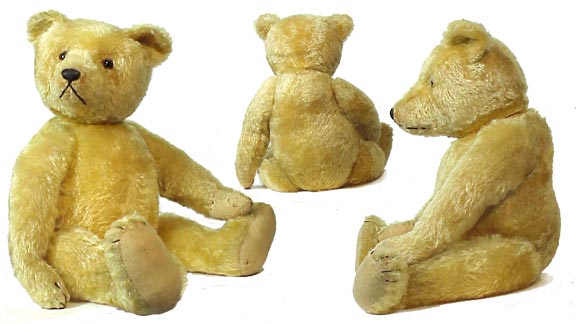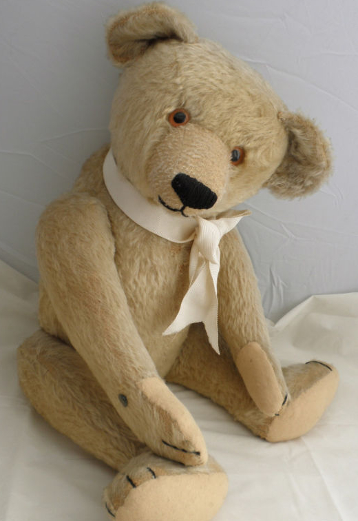 Bing is best known for it’s mechanical bears introduced around 1910, very hard to find nowadays. Early Bing teddy bears resembled Steiff bears but changed it’s design around 1920, using a longer snout with distinctive stitching on the muzzle and a very wide smile. Bing stopped producing bears in 1932 but still remain a favorite among collectors.