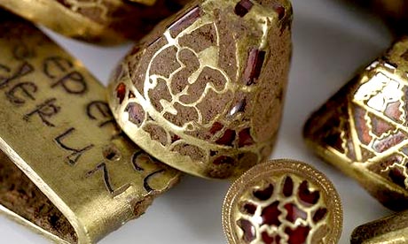 The first scraps of gold were found in July in a farm field by Terry Herbert, an amateur metal detector who lives alone in a council flat on disability benefit, who had never before found anything more valuable than a nice rare piece of Roman horse harness. The last pieces were removed from the earth by a small army of archaeologists a fortnight ago.
