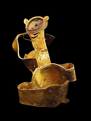 There is absolutely nothing feminine. There are no dress fittings, brooches or pendants. These are the gold objects most commonly found from the Anglo-Saxon ere. The vast majority of items in the hoard are martial such as war gear, especially sword fittings.”