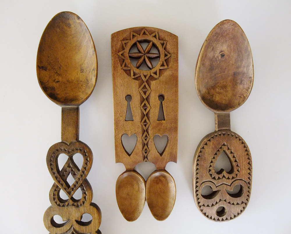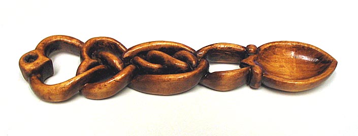 According to Welsh folklore, these ornately carved spoons were traditionally made from a single piece of wood by young men as a love token for their sweethearts to show affection and intentions for his loved one.