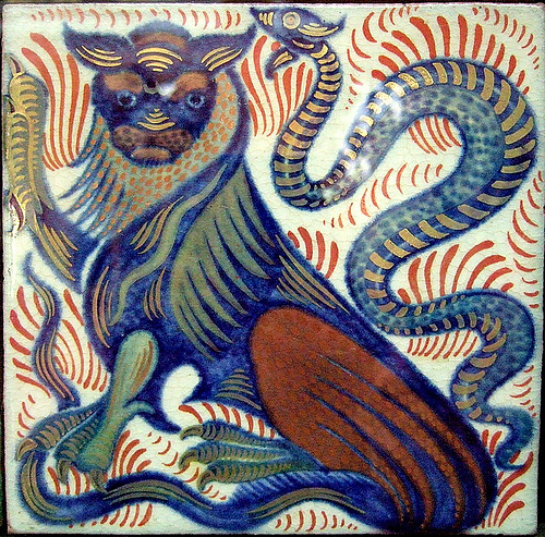 Collections of De Morgan’s work exist in many museums, including the Victoria and Albert Museum, and the William Morris Gallery in London, a substantial and representative collection in Birmingham Museum and Art Gallery, and a small but well-chosen collection along with much other pottery at Norwich. His dragon charger is in the Dunedin Public Art Gallery in New Zealand. The National Gallery of Canada in Ottawa has a very good collection of William De Morgan’s work given by Ruth Amelia Jackson in 1997 but much of it is kept in store. De Morgan’s work is also present in many major collections with decorative art including the Art Gallery of Ontario, Toronto, Canada, the Musee D’Orsay, Paris, Manchester Art Gallery and the Fitzwilliam Museum, Cambridge.
