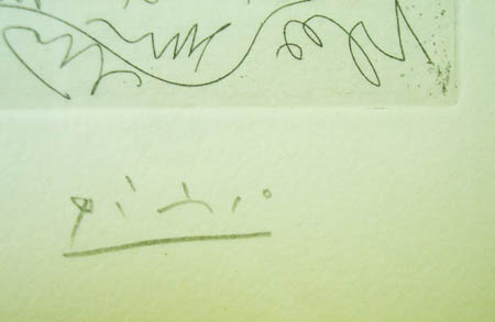 Picasso’s final works were a mixture of styles, his means of expression in constant flux until the end of his life. Devoting his full energies to his work, Picasso became more daring, his works more colorful and expressive, and from 1968 through 1971 he produced a torrent of paintings and hundreds of copperplate etchings. At the time these works were dismissed by most as pornographic fantasies of an impotent old man or the slapdash works of an artist who was past his prime. Only later, after Picasso’s death, when the rest of the art world had moved on from abstract expressionism, did the critical community come to see that Picasso had already discovered neo-expressionism and was, as so often before, ahead of his time.