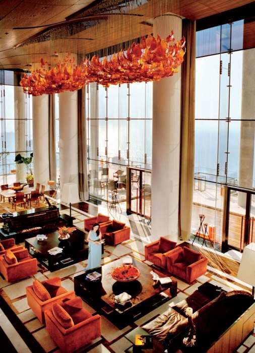 This multi-terraced home to Indian billionaire Mukesh Ambani, his wife Nita Ambani, and their three children is based on the lotus and sun, and the top of this structure is a private full-floor residence.