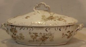 The firm of Henry Alcock was started in 1861 at the Elder Pottery in Cobridge formerly operated by John Alcock. General earthenwares were produced including white graniteware produced under the names “Ironstone China” and Parisian porcelain” exclusively for the American markets. The firm continued at Cobridge until 1910 when the Clarence Works at Stoke were engaged. The firm continued at Stoke under the name The Henry Alcock Pottery until 1935.