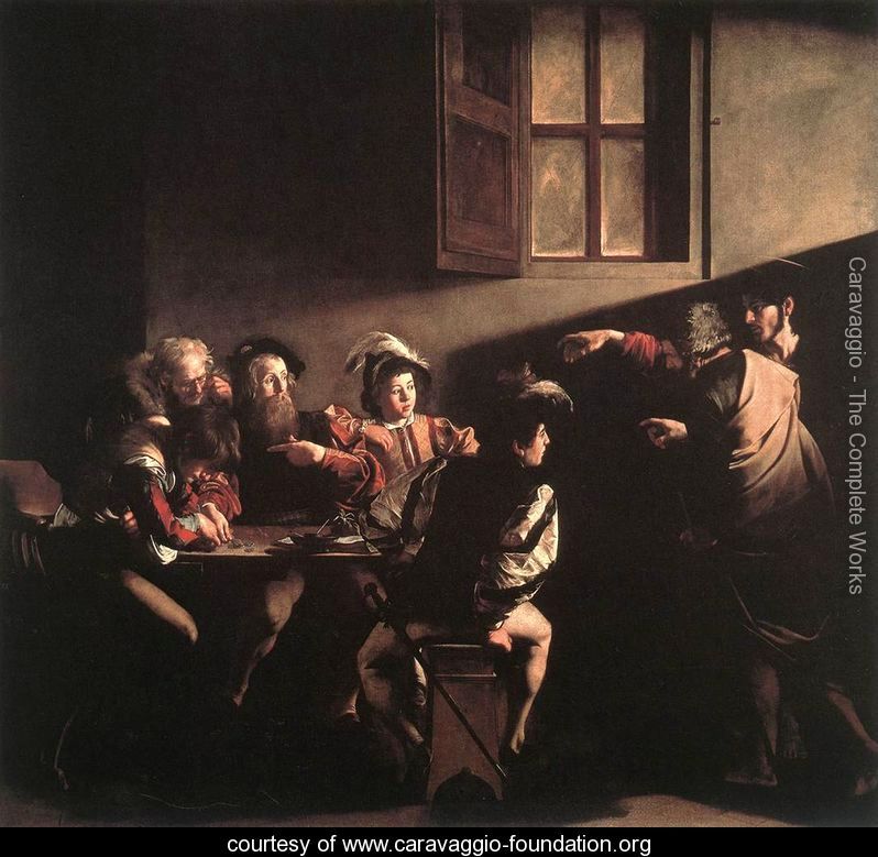 In 1599, presumably through the influence of Del Monte, Caravaggio contracted to decorate the Contarelli Chapel in the church of San Luigi dei Francesi. The two works making up the commission, the Martyrdom of Saint Matthew and Calling of Saint Matthew, delivered in 1600, were an immediate sensation. Caravaggio’s tenebrism (a heightened chiaroscuro) brought high drama to his subjects, while his acutely observed realism brought a new level of emotional intensity. Opinion among Caravaggio’s artist peers was polarized. Some denounced him for various perceived failings, notably his insistence on painting from life, without drawings, but for the most part he was hailed as a great artistic visionary: “The painters then in Rome were greatly taken by this novelty, and the young ones particularly gathered around him, praised him as the unique imitator of nature, and looked on his work as miracles.”