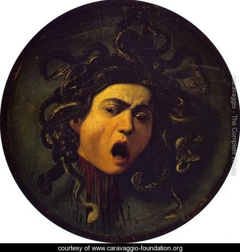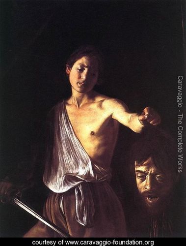 In Naples an attempt was made on his life, by persons unknown. At first it was reported in Rome that the “famous artist” Caravaggio was dead, but then it was learned that he was alive, but seriously disfigured in the face. He painted a Salome with the Head of John the Baptist (Madrid), showing his own head on a platter, and sent it to de Wignacourt as a plea for forgiveness. Perhaps at this time he painted also a David with the Head of Goliath, showing the young David with a strangely sorrowful expression gazing on the wounded head of the giant, which is again Caravaggio’s. This painting he may have sent to the unscrupulous art-loving cardinal-nephew Scipione Borghese, who had the power to grant or withhold pardons.