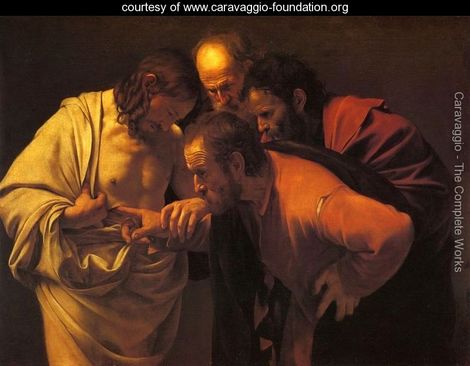 Caravaggio’s technique was as spontaneous as his temper. He painted straight onto the canvas with minimal preparation. Sometimes he abandoned a disappointing composition and painted new work over the top. Much to the horror of his critics, he used ordinary working people with irregular, rough and characterful faces as models for his saints and showed them in recognisably contemporary surroundings. In many paintings, such as the ‘Supper at Emmaus’, he makes his paintings appear to be an extension of real space, deliberately making the viewers feel as if they are taking part in the scene.