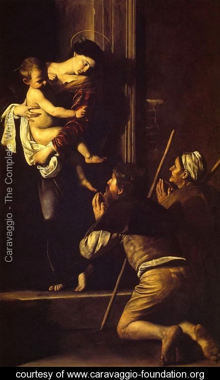 Other works included Entombment, the Madonna di Loreto (Madonna of the Pilgrims), the Grooms’ Madonna, and the Death of the Virgin. The history of these last two paintings illustrate the reception given to some of Caravaggio’s art, and the times in which he lived. The Grooms’ Madonna, also known as Madonna dei palafrenieri, painted for a small altar in Saint Peter’s Basilica in Rome, remained there for just two days, and was then taken off. A cardinal’s secretary wrote: “In this painting there are but vulgarity, sacrilege, impiousness and disgust…One would say it is a work made by a painter that can paint well, but of a dark spirit, and who has been for a lot of time far from God, from His adoration, and from any good thought…” The Death of the Virgin, then, commissioned in 1601 by a wealthy jurist for his private chapel in the new Carmelite church of Santa Maria della Scala, was rejected by the Carmelites in 1606. Caravaggio’s contemporary Giulio Mancini records that it was rejected because Caravaggio had used a well-known prostitute as his model for the Virgin; Giovanni Baglione, another contemporary, tells us it was due to Mary’s bare legs -a matter of decorum in either case. Caravaggio scholar John Gash suggests that the problem for the Carmelites may have been theological rather than aesthetic, in that Caravaggio’s version fails to assert the doctrine of the Assumption of Mary, the idea that the Mother of God did not die in any ordinary sense but was assumed into Heaven. The replacement altarpiece commissioned (from one of Caravaggio’s most able followers, Carlo Saraceni), showed the Virgin not dead, as Caravaggio had painted her, but seated and dying; and even this was rejected, and replaced with a work which showed the Virgin not dying, but ascending into Heaven with choirs of angels. In any case, the rejection did not mean that Caravaggio or his paintings were out of favour. The Death of the Virgin was no sooner taken out of the church than it was purchased by the Duke of Mantua, on the advice of Rubens, and later acquired by Charles I of England before entering the French royal collection in 1671.