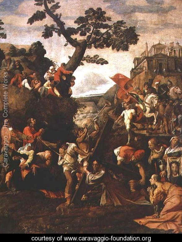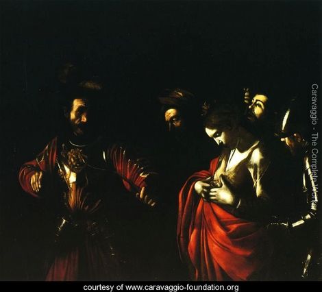After only nine months in Sicily Caravaggio returned to Naples. According to his earliest biographer he was being pursued by enemies while in Sicily and felt it safest to place himself under the protection of the Colonnas until he could secure his pardon from the pope (now Paul V) and return to Rome. In Naples he painted The Denial of Saint Peter, a final John the Baptist (Borghese), and, his last picture, The Martyrdom of Saint Ursula. His style continued to evolve – Saint Ursula is caught in a moment of highest action and drama, as the arrow fired by the king of the Huns strikes her in the breast, unlike earlier paintings which had all the immobility of the posed models. The brushwork was much freer and more impressionistic. Had Caravaggio lived, something new would have come. The Denial of Saint Peter, c. 1610. Oil on canvas, 94 x 125 cm. Metropolitan Museum of Art, New York. In the chiaroscuro a woman points two fingers at Peter while a soldier points a third. Caravaggio tells the story of Peter denying Christ three times with this symbolism.