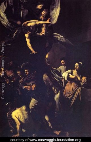 It was probably through the Cardinal that in 1599 he obtained the commission to decorate the Contarelli Chapel in the French church in Rome with scenes from the life of St Matthew. These paintings were his first public work and they caused a sensation with their extreme realism and dramatic contrasts of light and shade. He then secured a string of prestigious commissions, many of them religious works.