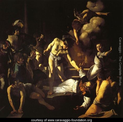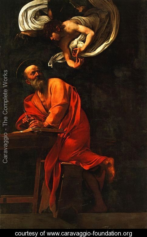Caravaggio went on to secure a string of prestigious commissions for religious works featuring violent struggles, grotesque decapitations, torture and death. For the most part each new painting increased his fame, but a few were rejected by the various bodies for whom they were intended, at least in their original forms, and had to be re-painted or find new buyers. The essence of the problem was that while Caravaggio’s dramatic intensity was appreciated, his realism was seen by some as unacceptably vulgar. His first version of Saint Matthew and the Angel, featured the saint as a bald peasant with dirty legs attended by a lightly-clad over-familiar boy-angel, was rejected and a second version had to be painted as The Inspiration of Saint Matthew. Similarly, The Conversion of Saint Paul was rejected, and while another version of the same subject, the Conversion on the Way to Damascus, was accepted, it featured the saint’s horse’s haunches far more prominently than the saint himself, prompting this exchange between the artist and an exasperated official of Santa Maria del Popolo: “Why have you put a horse in the middle, and Saint Paul on the ground?” “Because!” “Is the horse God?” “No, but he stands in God’s light!”