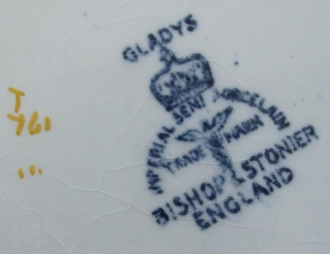 - printed marks used c.1891- 1936….. This mark was registered as a trade mark by Powell, Bishop & Stonier in 1880 the mark was also used by subsequent partnerships including Bishop & Stonier.