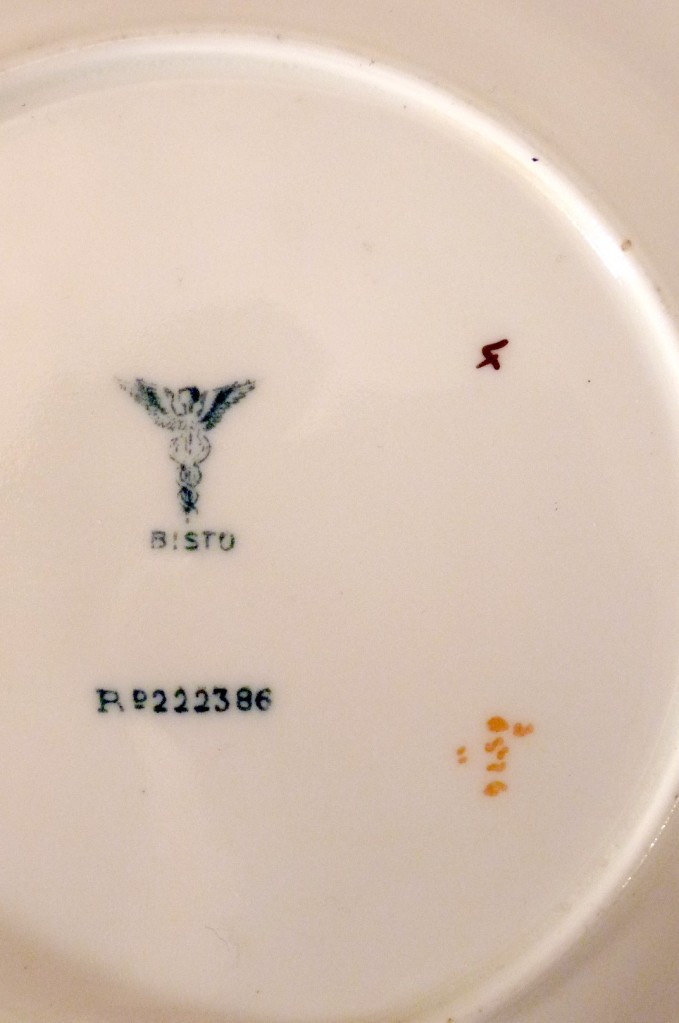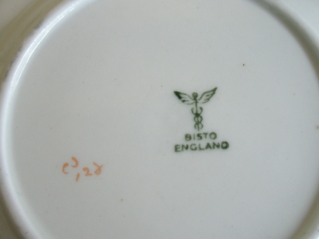 - PLATE MEASURES 10 3/8 INCHES IN DIAMETER PATTERN NAME, “FLORENCE”, THEN THE WAND OF CADUCEUS, THEN “BISTO”, THEN “ENGLAND”. AND THE IMPRESSED WAND OF CADUCEUS