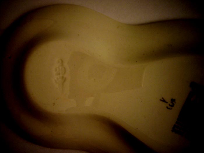 The absence of the words ‘HAND-PAINTED’ (eg compare N2 and N3, H1 and H2) may simply have been a practical consideration where there was little space to put the complete mark. However, the absence of these words on mark N5 (ie mark N6) does seem to coincide with the trend for less or even no hand-painting on the pottery in the 1950s.