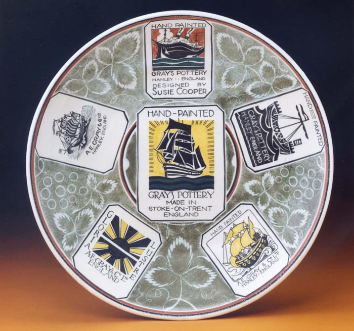 From this we know that Jack Bond, an accomplished artist who had produced a number of designs for the pottery, created both the Clipper and the Pharaoh’s Boat backstamps, though his memory regarding the date of their introduction may have been slightly erroneous. His Clipper mark was highly successful and was in use, subtly modified as appropriate, from the early 1930s until the last of Gray’s Pottery products were made in 1961.