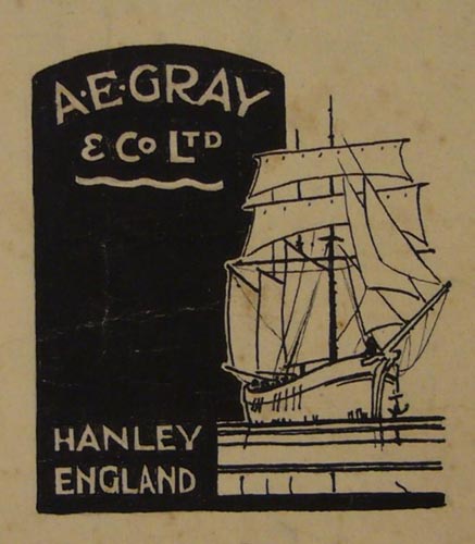 Gray’s Pottery used many backstamps throughout the life of the company. 53 of them are included on this website but only 20 represent significantly different versions. However, of these, just six form major families of marks (ILLUSTRATION 1), five of which are based on ship designs; the 1st and 2nd Galleons, the Liner, the Clipper and the Pharaoh’s Boat. The exception is the ‘Sunburst’ Gloria Lustre mark. Little documentation exists about precisely when particular stamps were in use but a letter written to AE Gray’s son Robin in 1977 from one of his relations, Major General GA (Jack) Bond, contains the following: