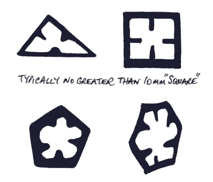 Special Gloria Lustre patterns in the 5000 and 6000 series and at the start of the 7000 series of patterns, often carry a strange hand-painted rebus. It may be three, four, five or six-sided. Its significance is still not known (ILLUSTRATION 9).