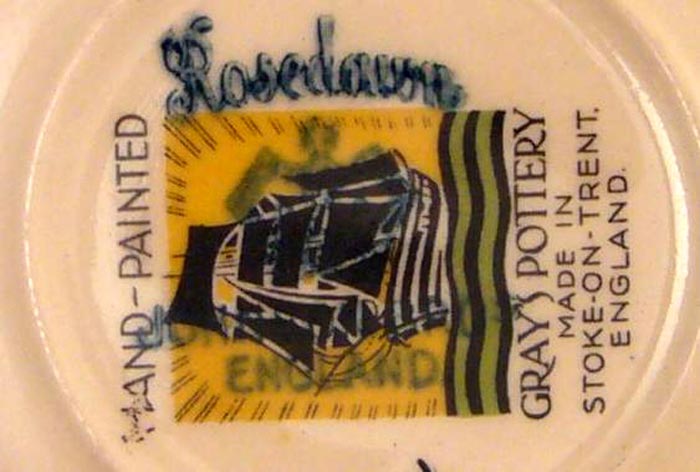 The backstamps illustrated on this site have been taken from actual items of Gray’s Pottery and the dates shown have been deduced from a wide range of evidence. Note that the information is given in good faith, based on pieces of pottery, oral evidence from Gray’s Pottery employees and documentary material in contemporary sources. Very little original company material has survived, meaning that potentially useful primary source data no longer exist. Researchers and collectors must be aware that attributing dates is not an exact science and there are many exceptions to whatever rules exist!