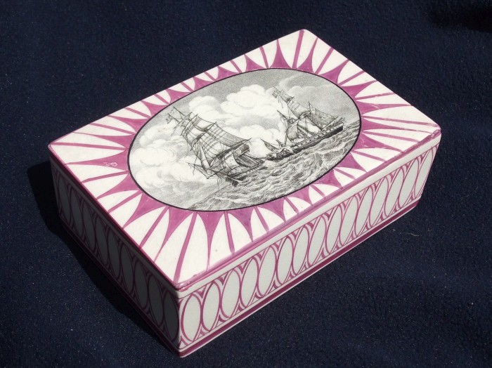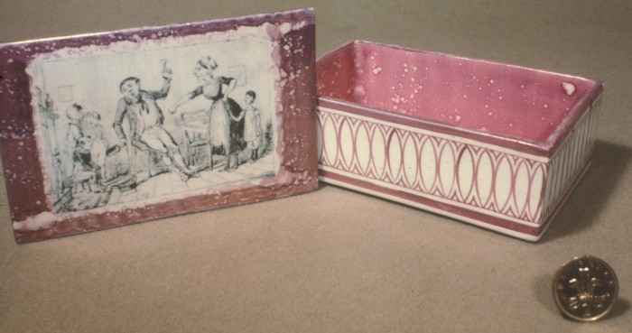 - The interior of the box is pink splashed lustre.